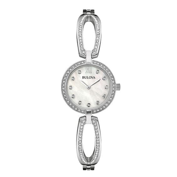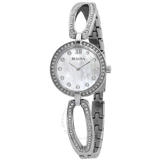 Bulova Crystal Collection Mother of Pearl Dial Silver Steel Strap Watch for Women - 96L223
