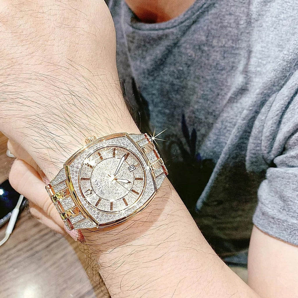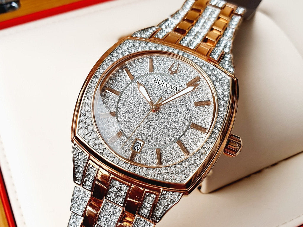 - This high quality watch is embellished with 582 crystals on the bezel -The watch has a calendar function: Date, Luminous Hands