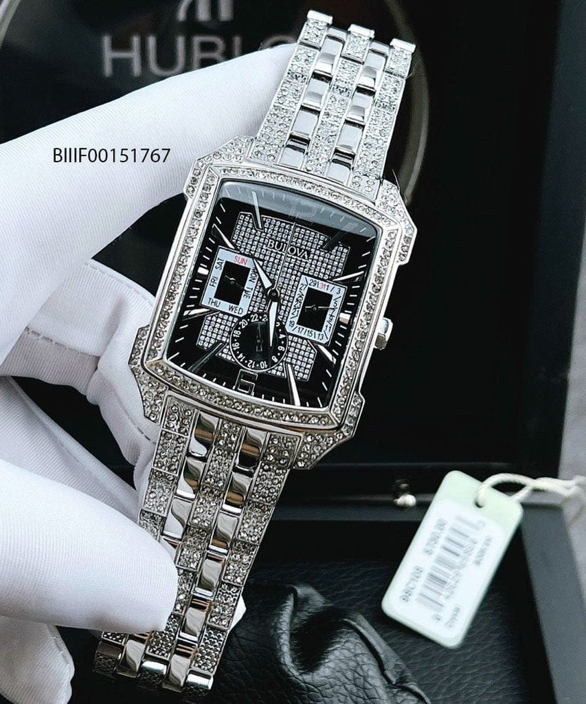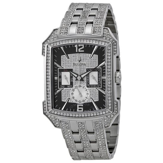 Bulova Crystal Collection Black Dial Silver Steel Strap Watch for Men - 98C108