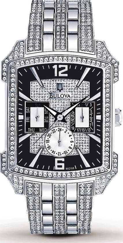 Make a statement with this Bulova Crystal featuring hand set genuine Swarovski crystals. The quartz multifunction movement provides both functionality and style and adds to this bold design. A look that is sure to be noticed, this Bulova crystal style offers a distinctive mix of design and technology.