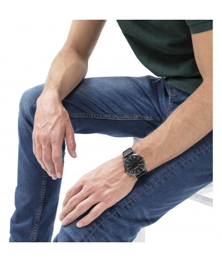 Calvin Klein City Quartz Black Dial Black Leather Strap Watch for Men - K2G2G4C1