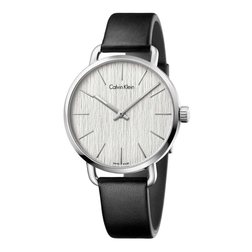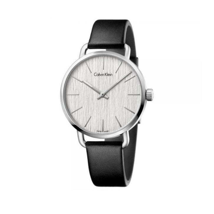 Calvin Klein Even White Dial Black Leather Strap Watch for Women - K7B211C6