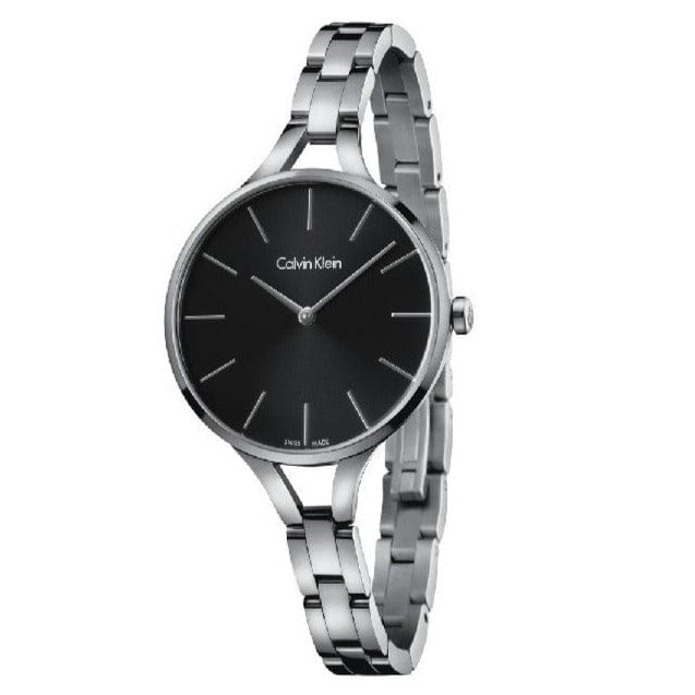 Calvin Klein Graphic Black Dial Silver Steel Strap Watch for Women - K7E23141