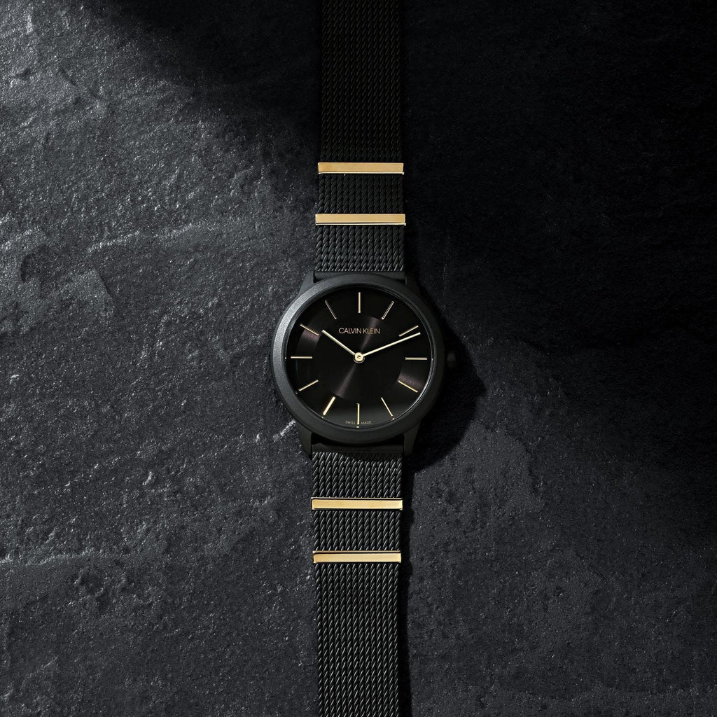 Calvin Klein Minimal Black Dial Black Steel Strap Watch For Men - K3M524Z1