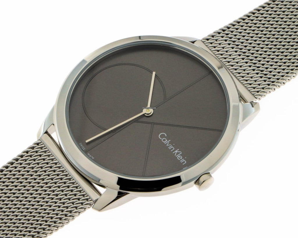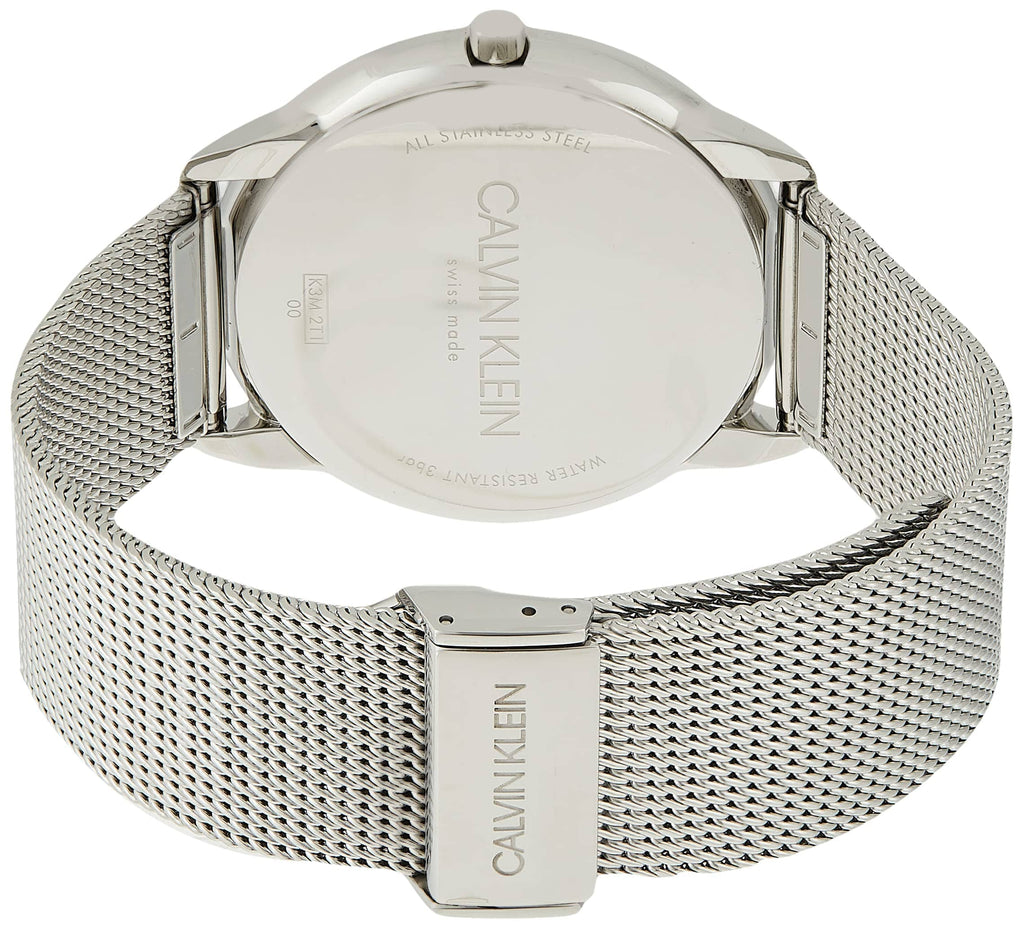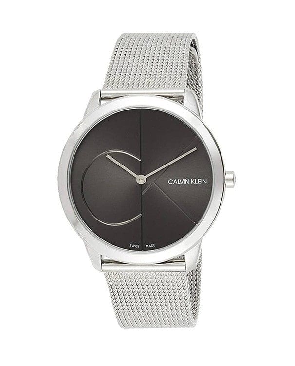 Calvin Klein Minimal Black Dial Silver Mesh Bracelet Watch for Men - K3M21123