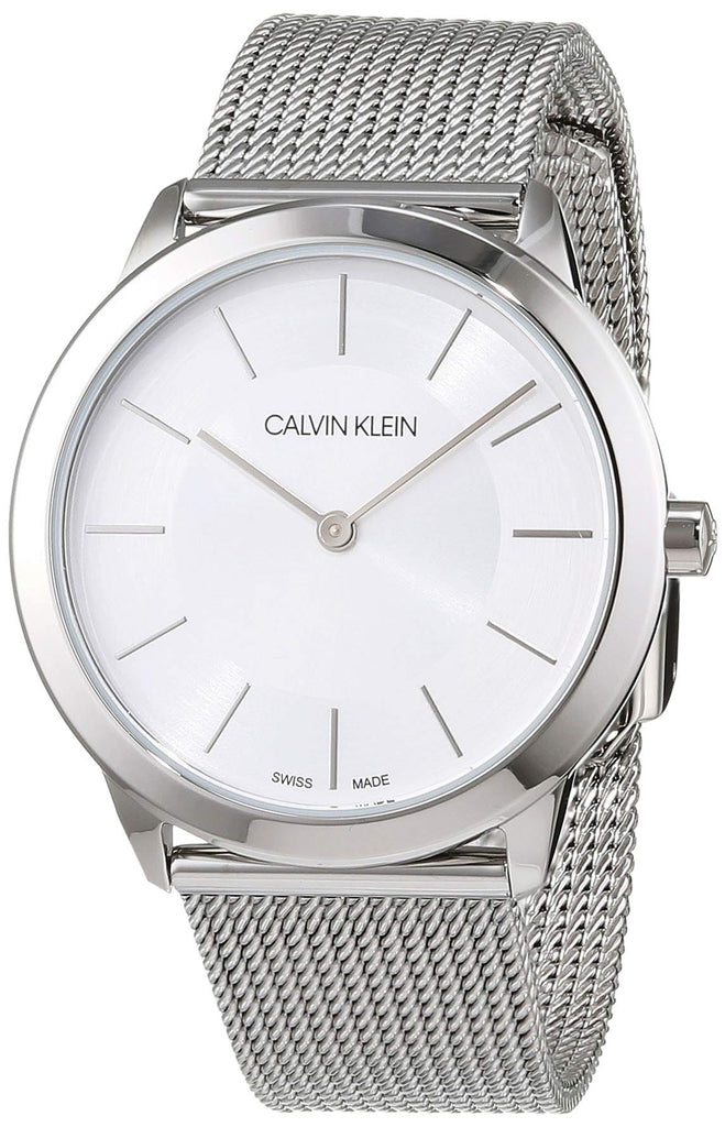 Calvin Klein Minimal White Dial Silver Mesh Bracelet Watch for Men - K3M22126