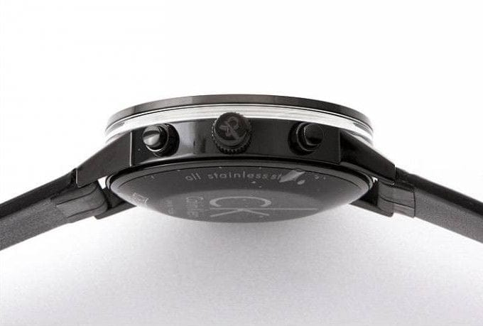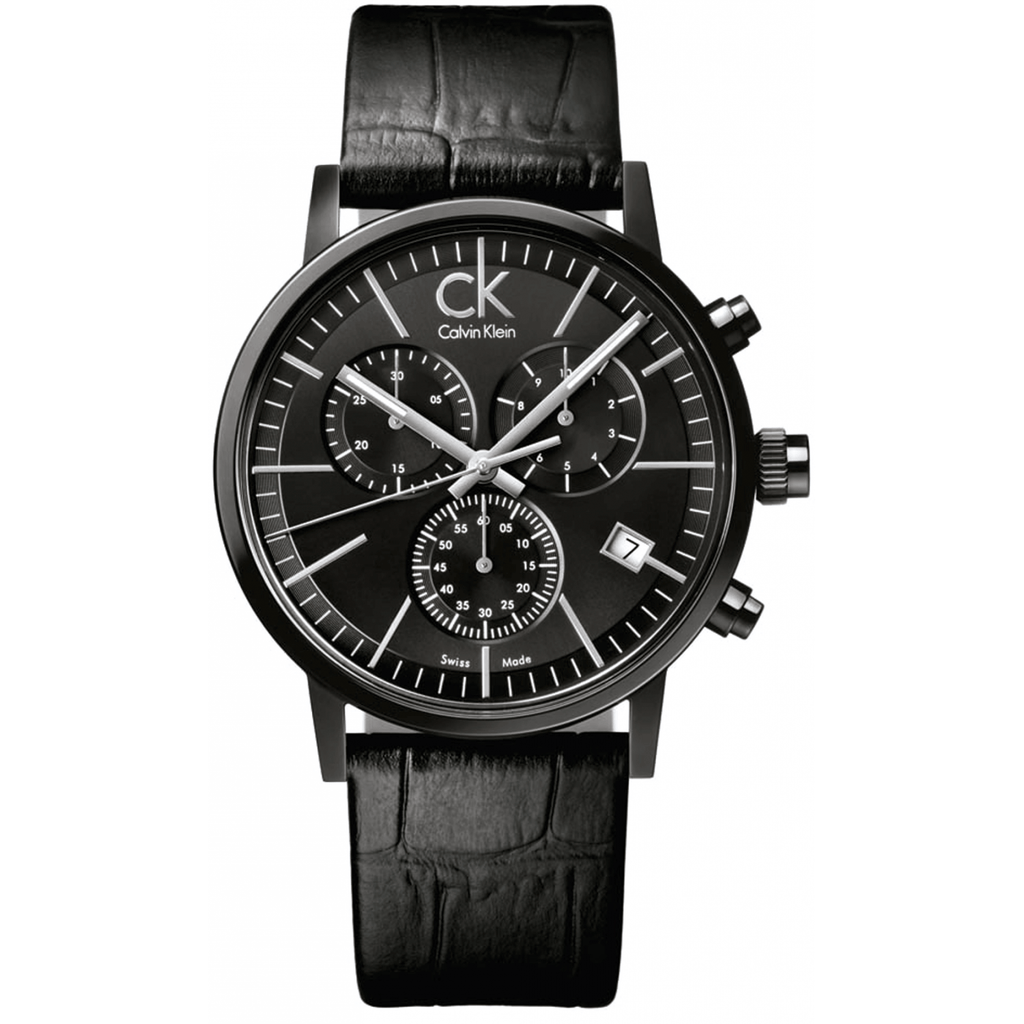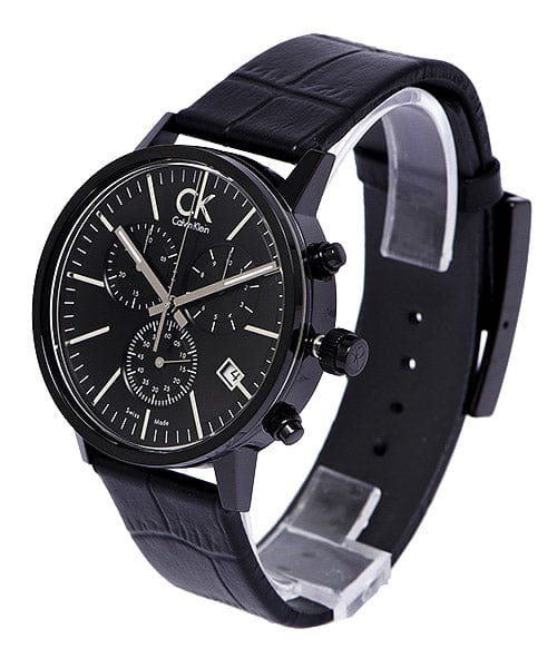 The Mens Calvin Klein Watch Black Collection (Black Collection K7627401) It features a black textured leather strap, a carbon coated stainless steel case and has a black with three hand movement, sub dial chronograph and date window dial. The Black Collection K7627401 comes with an official Calvin Klein Watches 2 year guarantee.