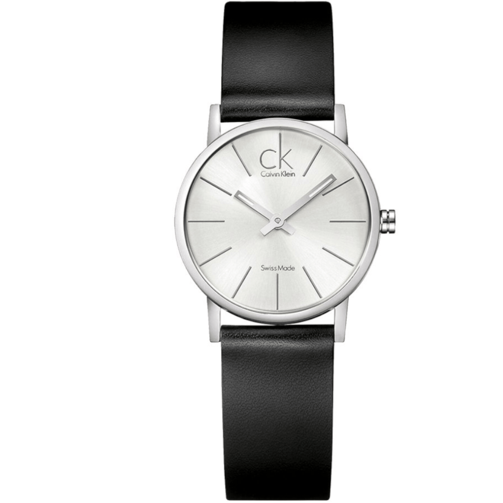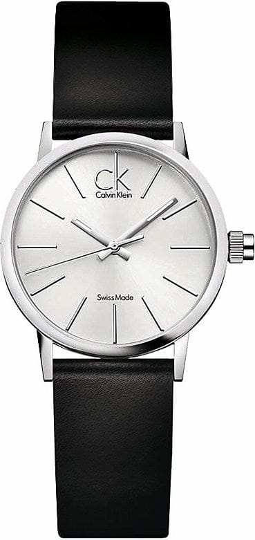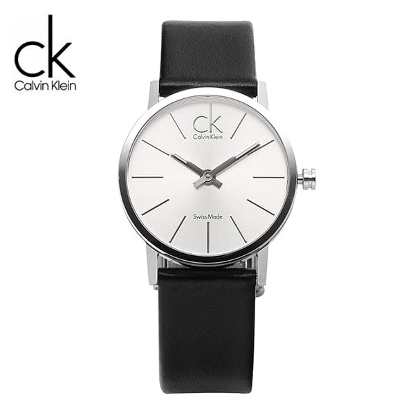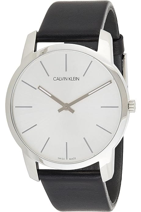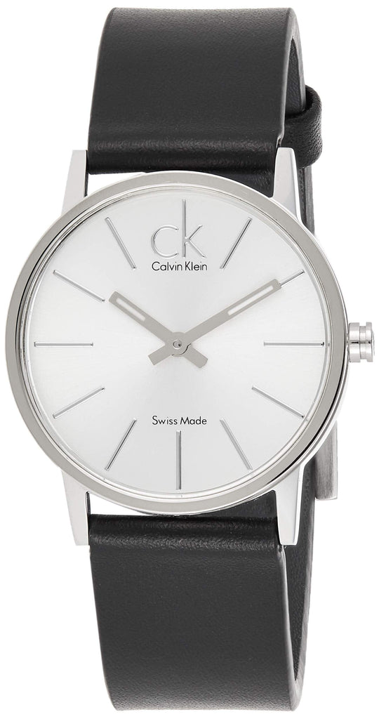 Calvin Klein Post Minimal Silver Dial Black Leather Strap Watch for Men - K7622185