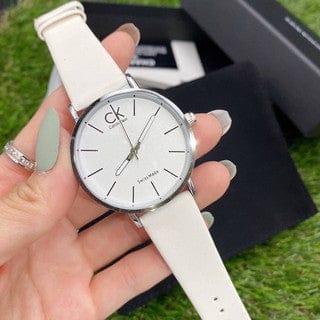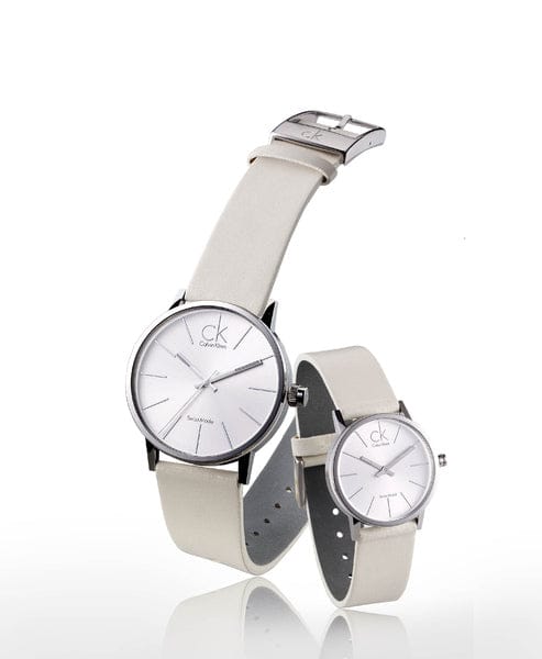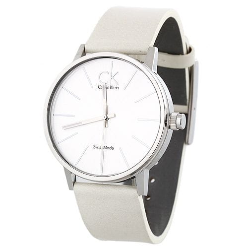 Calvin Klein Post Minimal Silver Dial White Leather Strap Watch for Men - K7621126