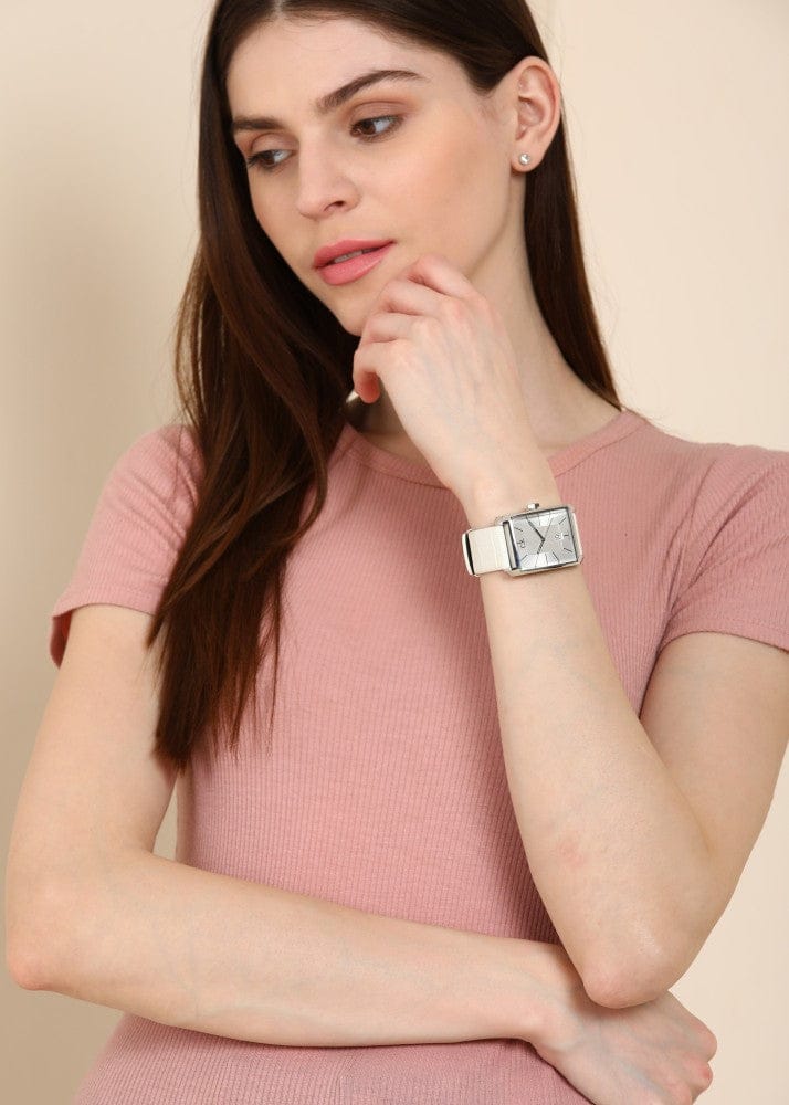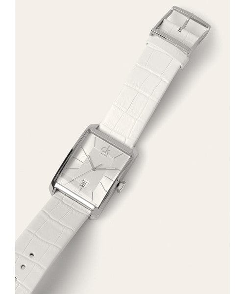 Calvin Klein Window White Dial White Leather Strap Watch for Men - K2M21120