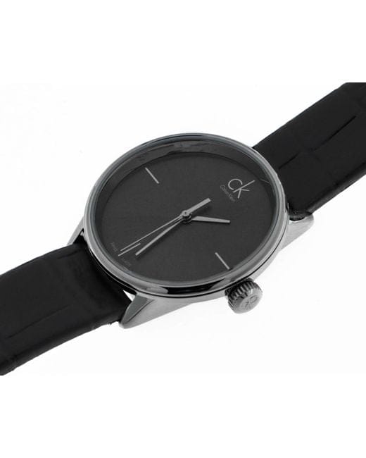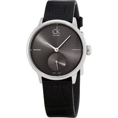 Calvin Klein Accent Black Dial Black Leather Strap Watch for Women - K2Y2Y1C3