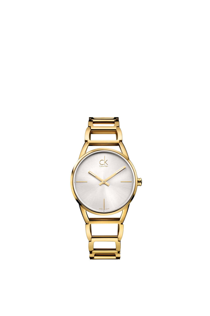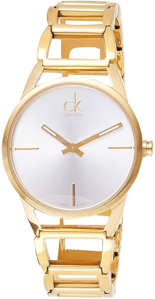 Calvin Klein Stately Silver Dial Gold Steel Strap Watch for Women - K3G23526