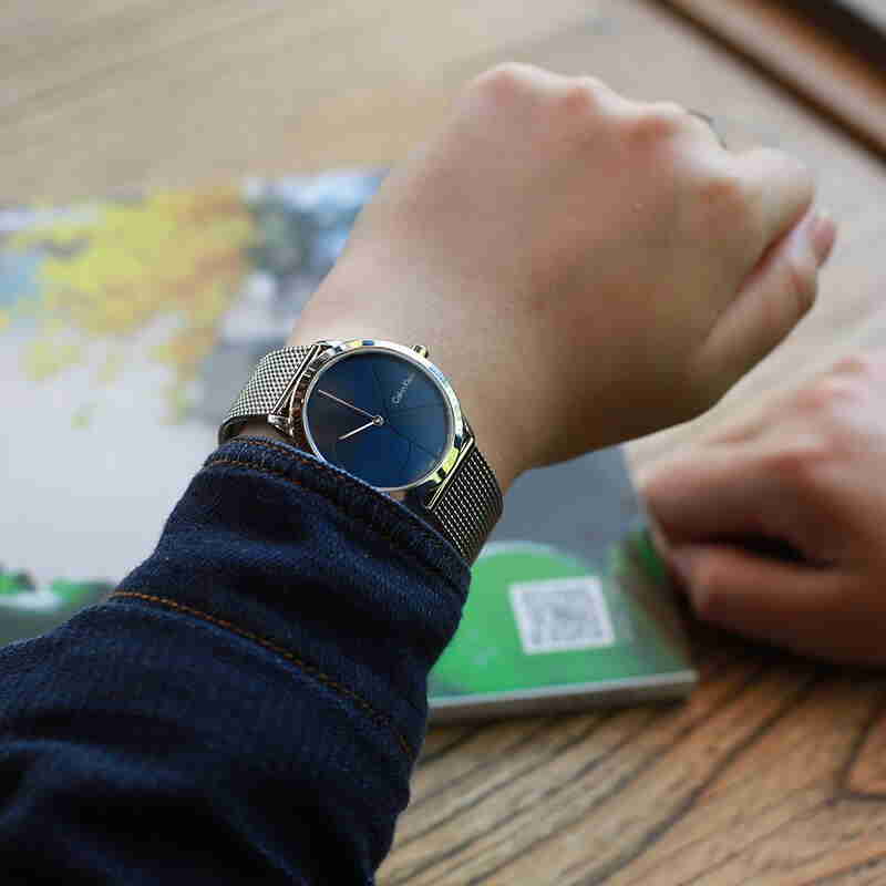 Calvin Klein Minimal Blue Dial Silver Mesh Bracelet Watch for Men - K3M2112N