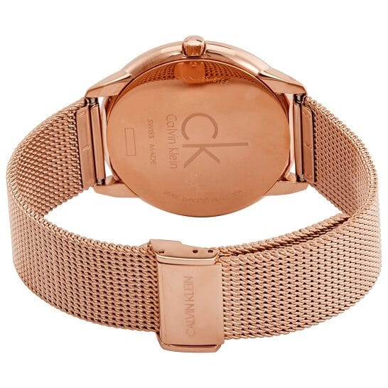 Calvin Klein Minimal 40mm K3M21626 is a functional and handsome Gents watch. Case material is PVD rose plating, which stands for a high quality of the item while the dial color is Silver. In regards to the water resistance, the watch has got a resistance up to 30 meters. It means it can be worn in scenarios where it is likely to be splashed but not immersed in water. It can be worn while washing your hands and will be fine in rain.