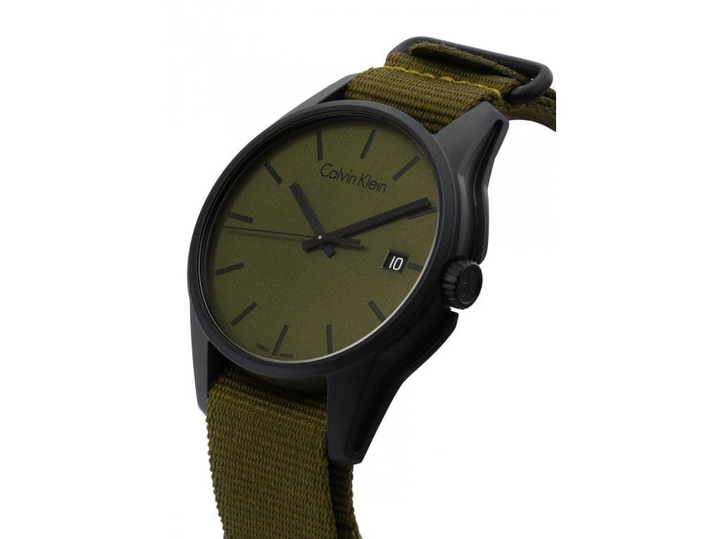 Calvin Klein Tone Green Dial Green NATO Strap Watch for Men - K7K514WL