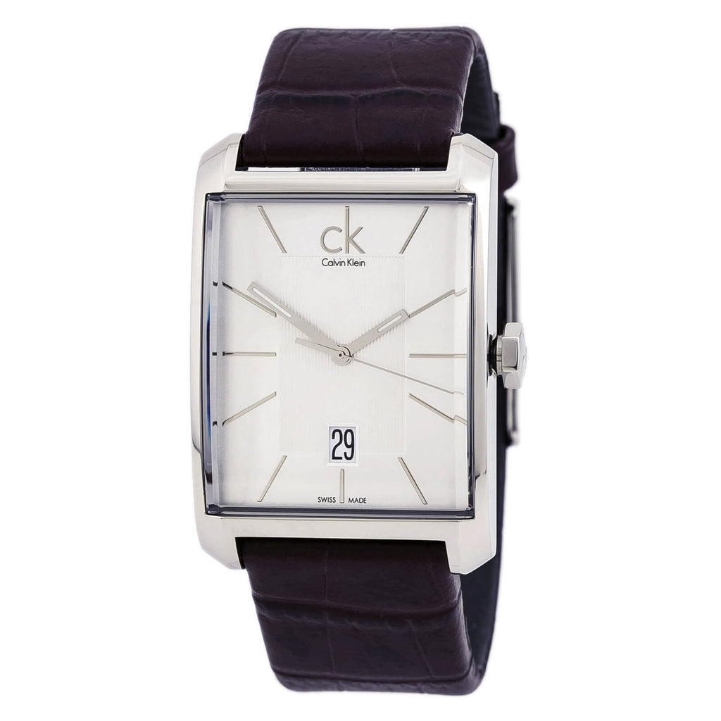 Calvin Klein Window Silver Dial Brown Leather Strap Watch for Men - K2M21126