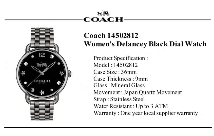 Coach Delancey Black Dial Black Steel Strap Watch For Women - 14502812