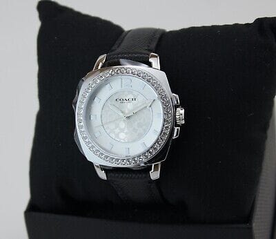 Coach Boyfriend, 34mm, stainless steel case, crystal set bezel, siliver white dial and black leather strap