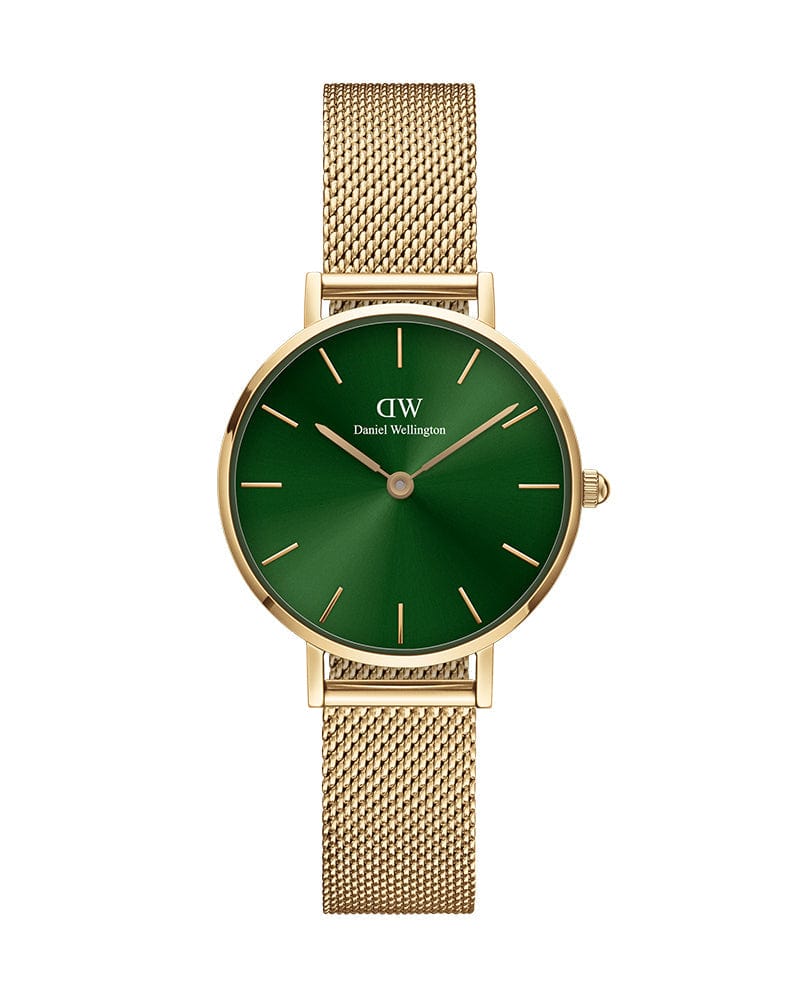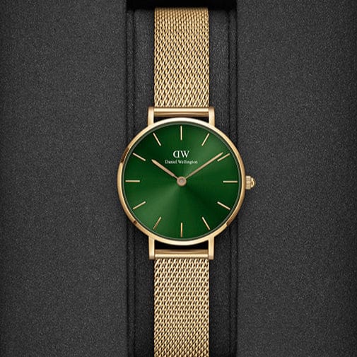Elevate your style with the Daniel Wellington Petite watch. Featuring an emerald green dial and Gold mesh strap, this watch exudes elegance and sophistication. Make a statement with the timeless design and precise timekeeping of this exquisite timepiece. Treat yourself or someone special to the perfect combination of luxury and practicality.