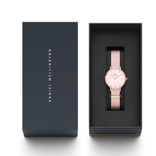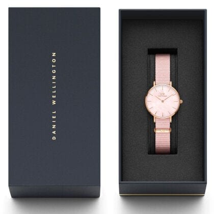Daniel Wellington Petite Mother of Pearl Pink Dial Pink Nylon Strap Watch For Women - DW00100512