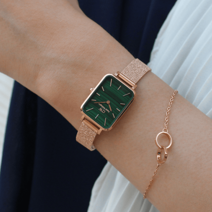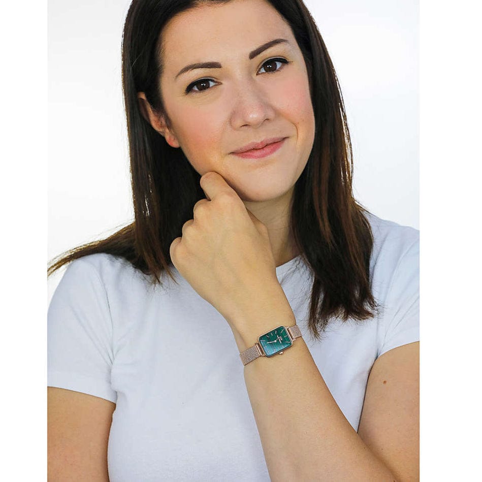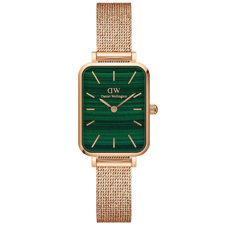 Daniel Wellington Quadro Melrose Green Dial Rose Gold Mesh Strap Watch For Women - DW00100437