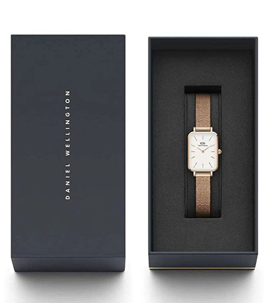 Bring a touch of elegance and sophistication to your wrist with the Daniel Wellington Quadro Melrose Watch. Featuring a beautiful white dial, gold mesh strap, and sleek design, this watch is the perfect accessory for any woman looking to make a statement. With its luxurious features, it's more than just a timepiece, it's a fashion statement.