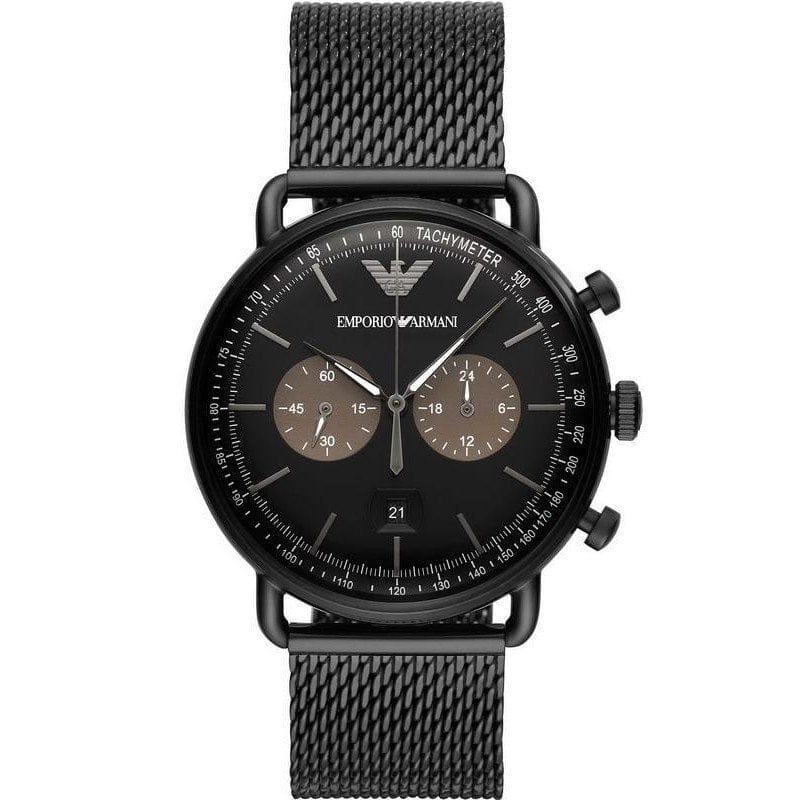 Emporio Armani Aviator Black Dial Black Mesh Bracelet Watch For Men - AR11142