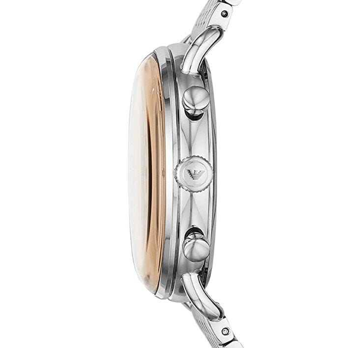 Emporio Armani Aviator Chronograph Beige Dial Silver Steel Strap Watch For Men - AR11239