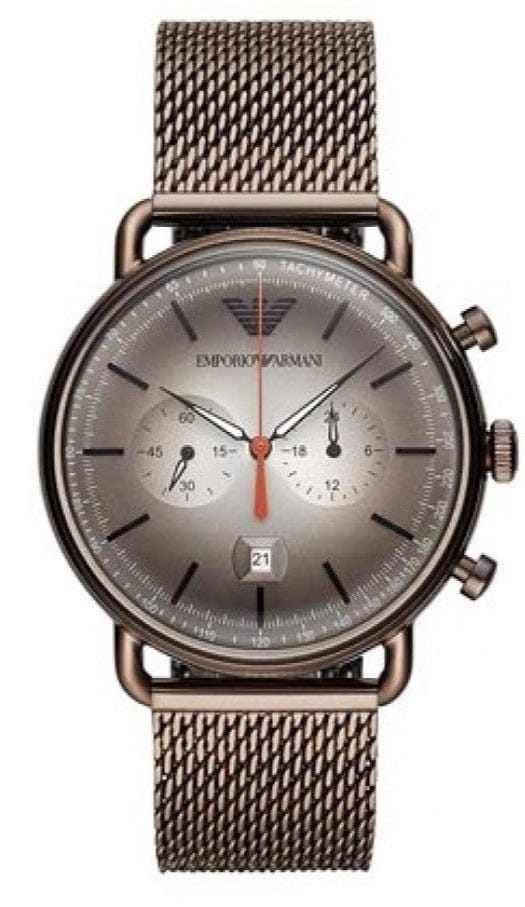 Emporio Armani Aviator Chronograph Grey Dial Brown Mesh Bracelet Watch For Men - AR11169