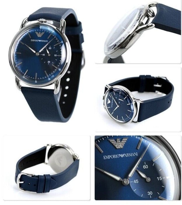 Emporio Armani Aviator Quartz Blue Dial Blue Leather Strap Watch For Men - AR11335