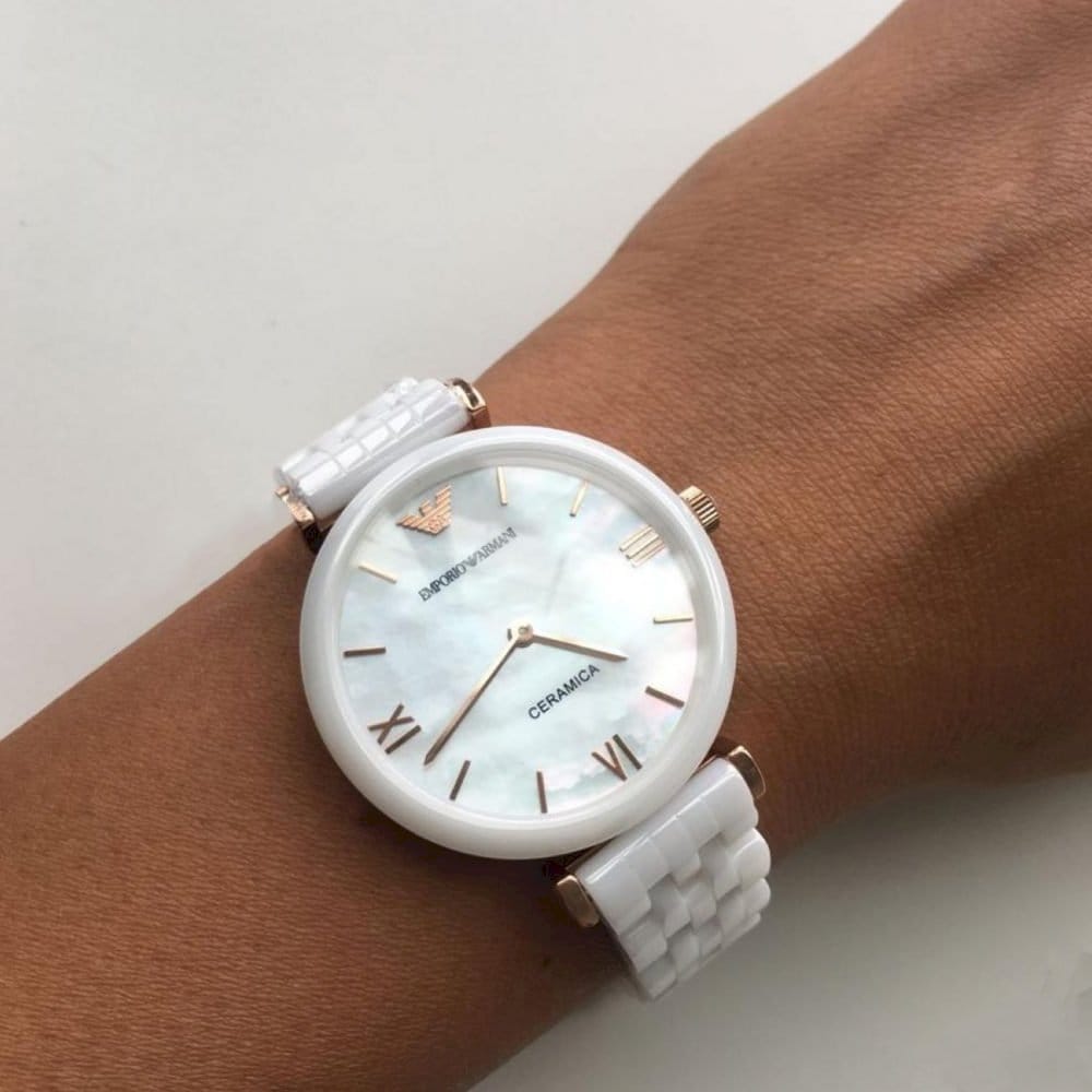 Emporio Armani Ceramica Mother of Pearl Ladies Watch AR1486