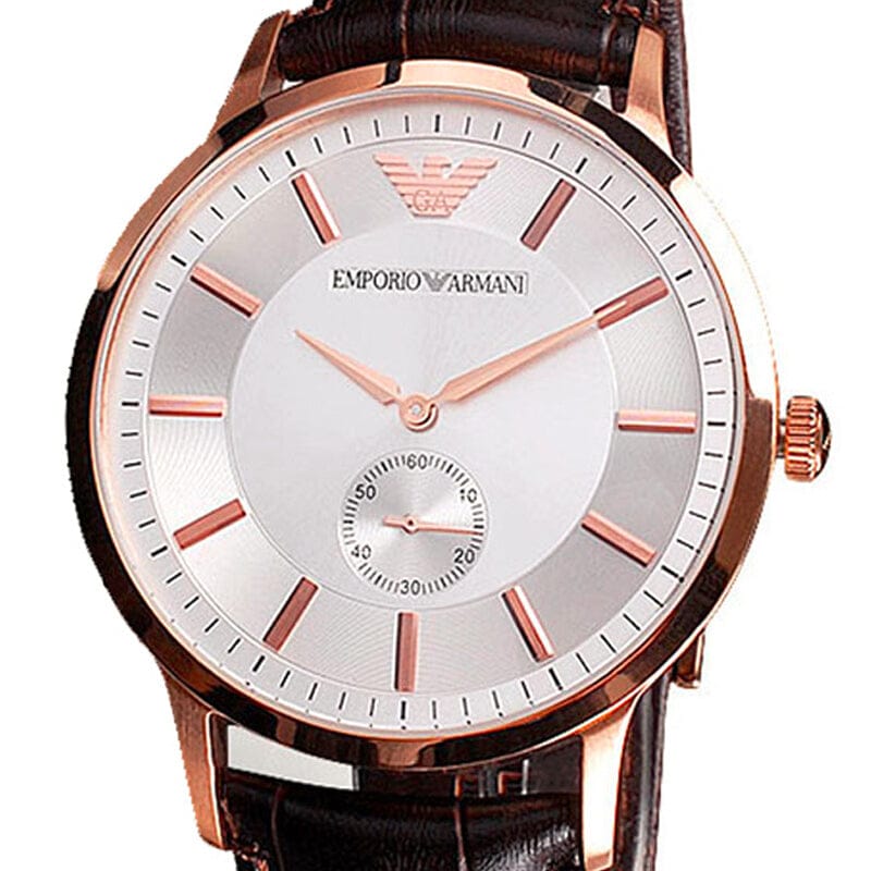 Emporio Armani Classic Analog Silver Dial Brown Leather Strap Watch For Men - AR9101