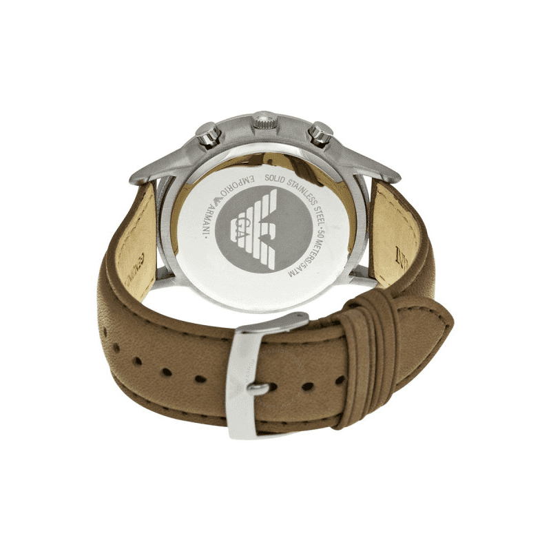 This analogue watch from Emporio Armani has a real leather strap in brown, complemented by a silver dial. Please note, the dial for the Emporio Armani AR2471 men's watch has 43 mm in diameter.