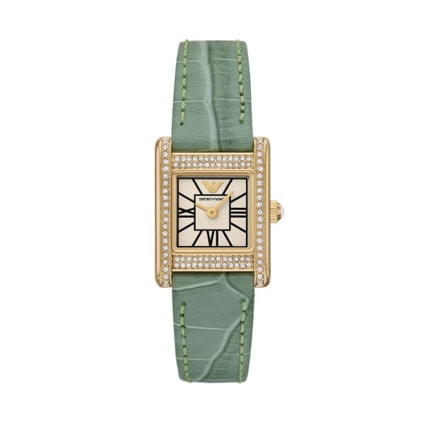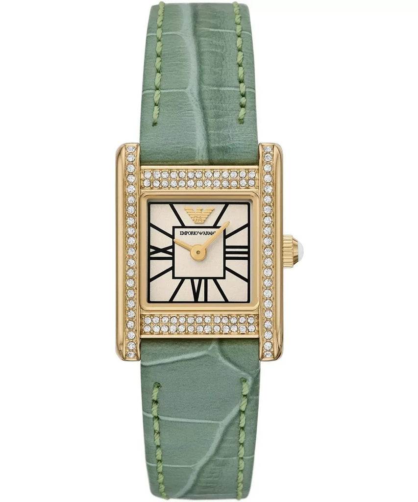Emporio Armani Classic White Dial Green Leather Strap Watch for Women - AR11661
