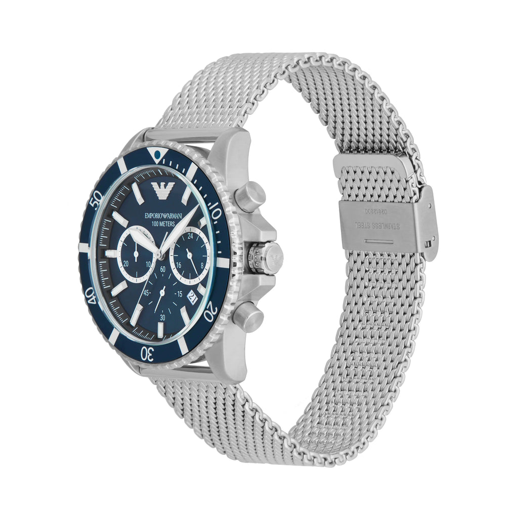 Emporio Armani Diver Chronograph Blue Dial Silver Mesh Strap Watch for Men - AR11587