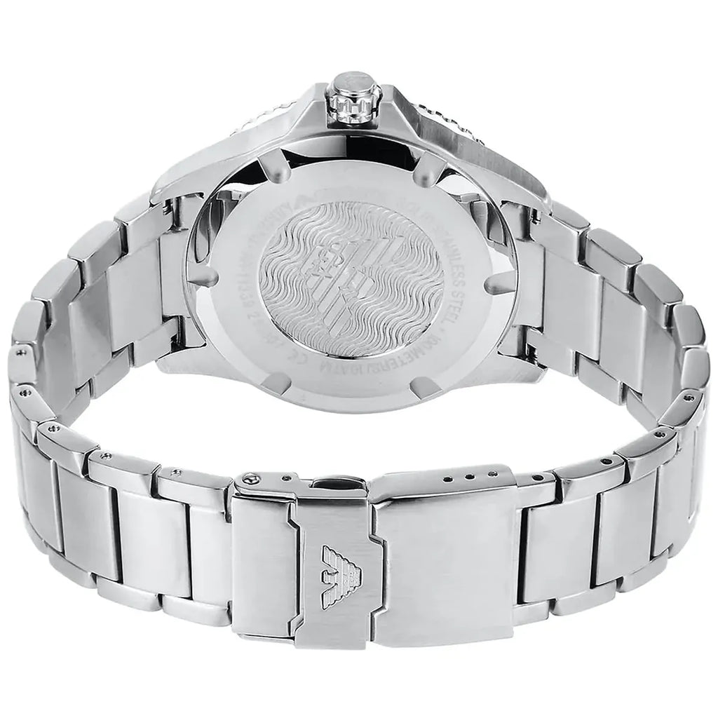 Emporio Armani Diver Quartz Blue Dial Silver Steel Strap Watch For Men - AR11339