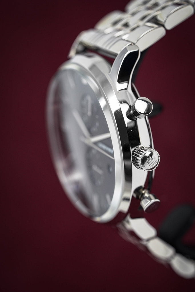 Emporio Armani Gianni Chronograph Blue Dial Silver Steel Strap Watch For Men - AR1648