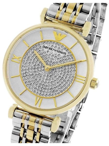 Emporio Armani Gianni T Bar Analog White Dial Two Tone Steel Strap Watch For Women - AR2076