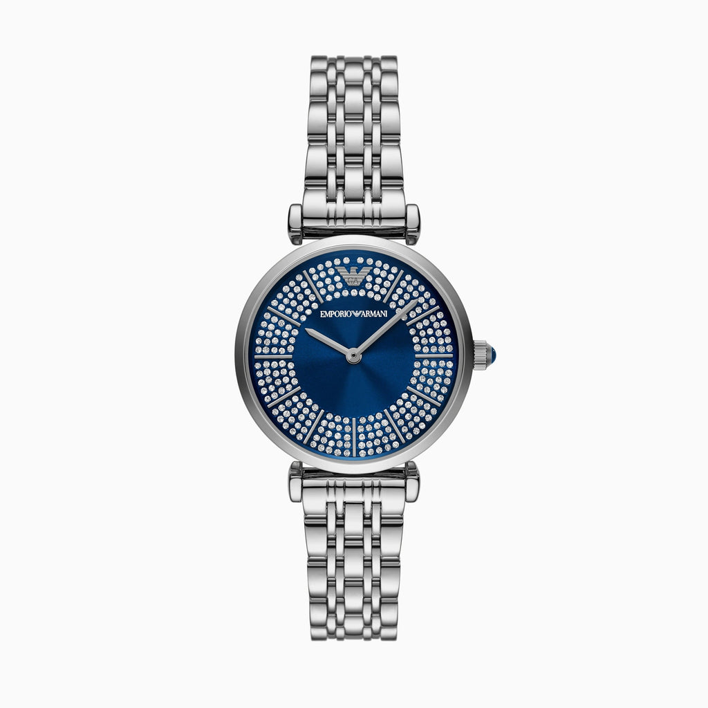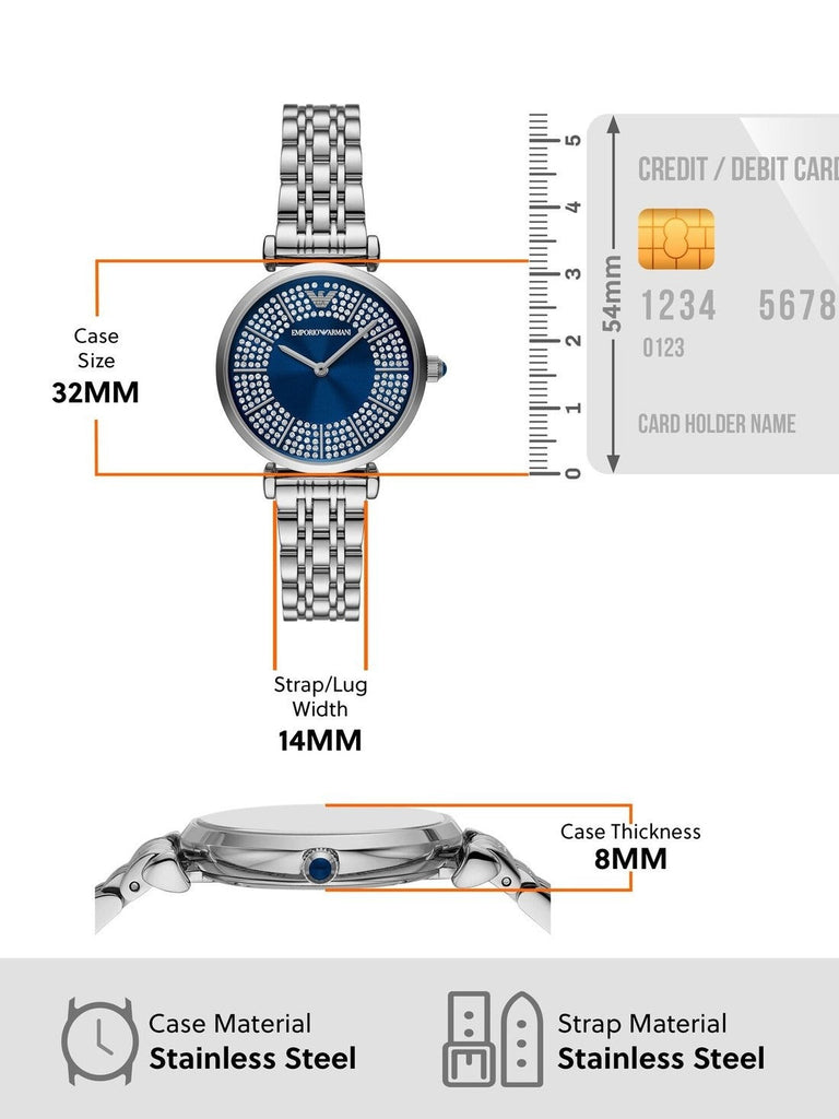 Emporio Armani Gianni T-Bar Blue Dial Silver Steel Strap Watch for Women - AR11627