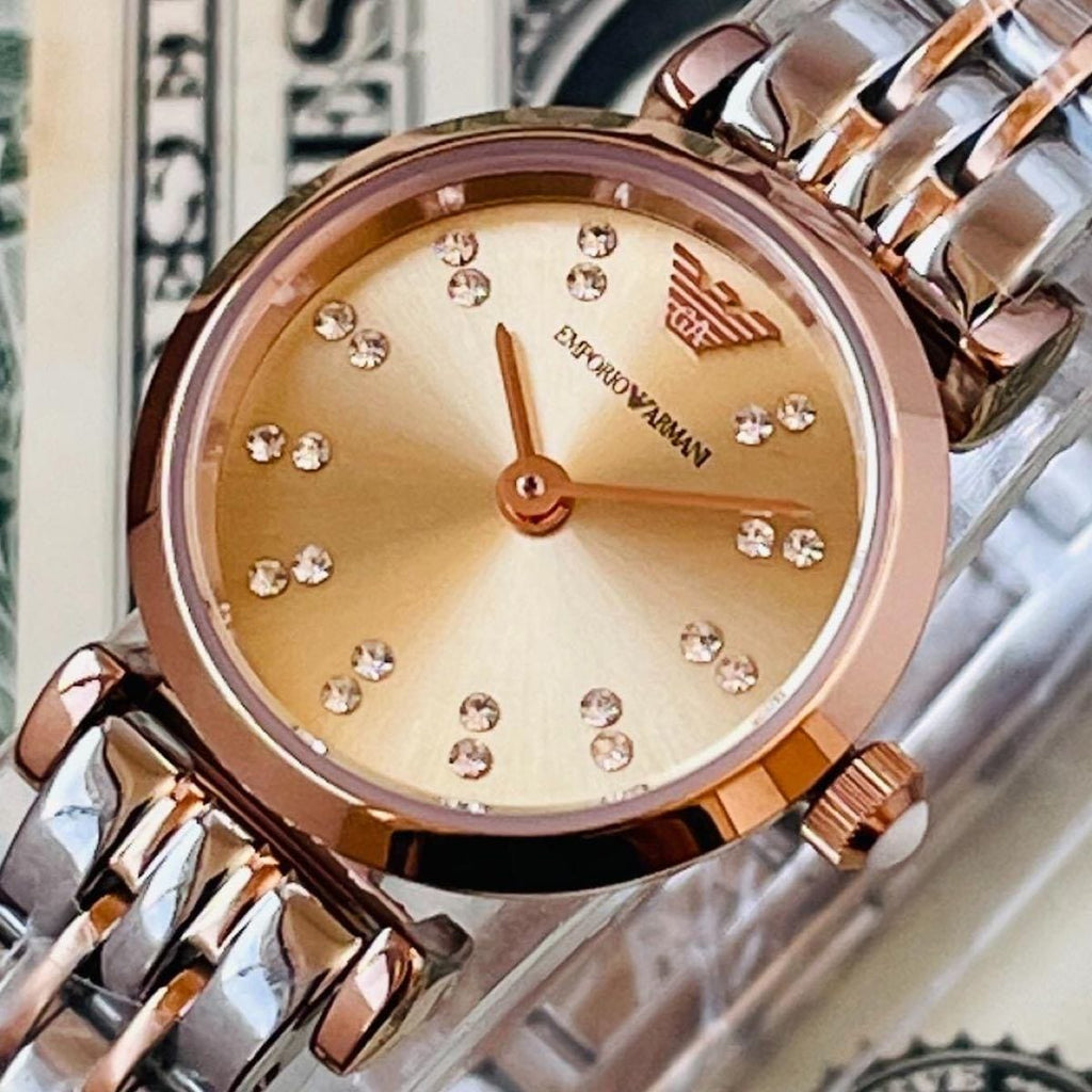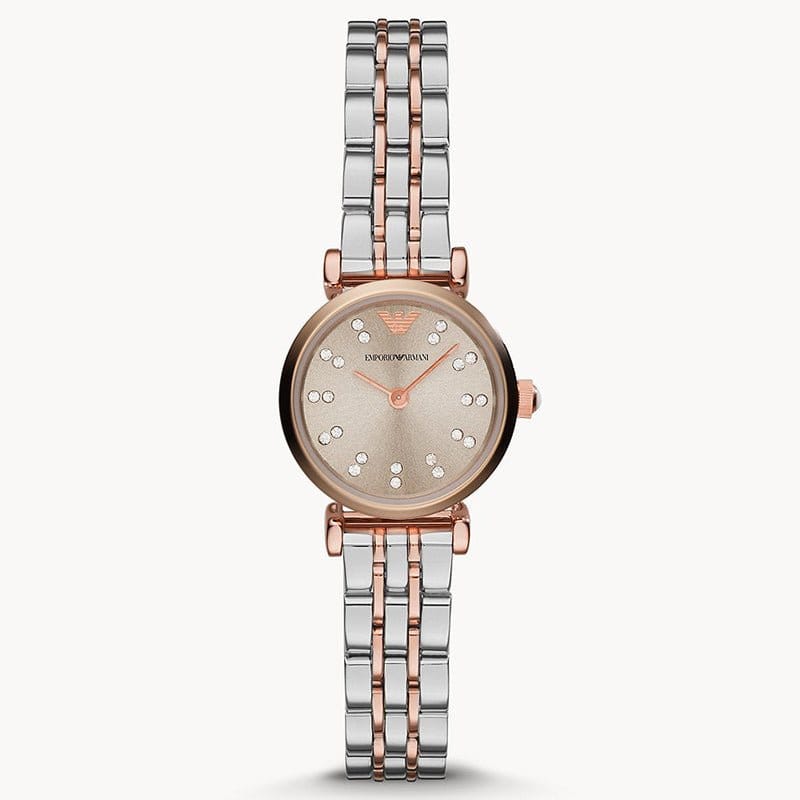 Emporio Armani Gianni T Bar Grey Dial Two Tone Steel Strap Watch For Women - AR1841