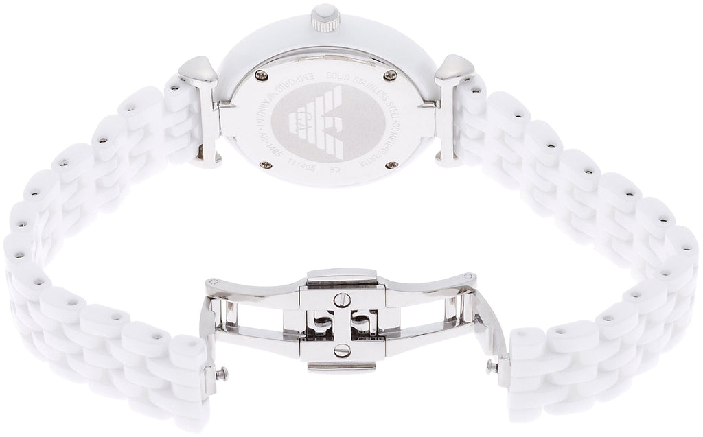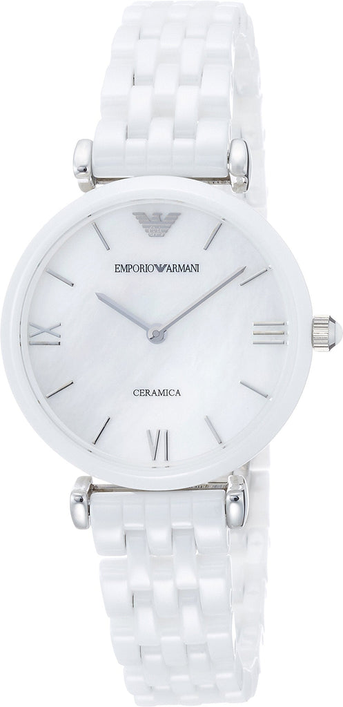 Emporio Armani Giannti T Bar Quartz Mother of Pearl Dial White Steel Strap Watch For Women - AR1485