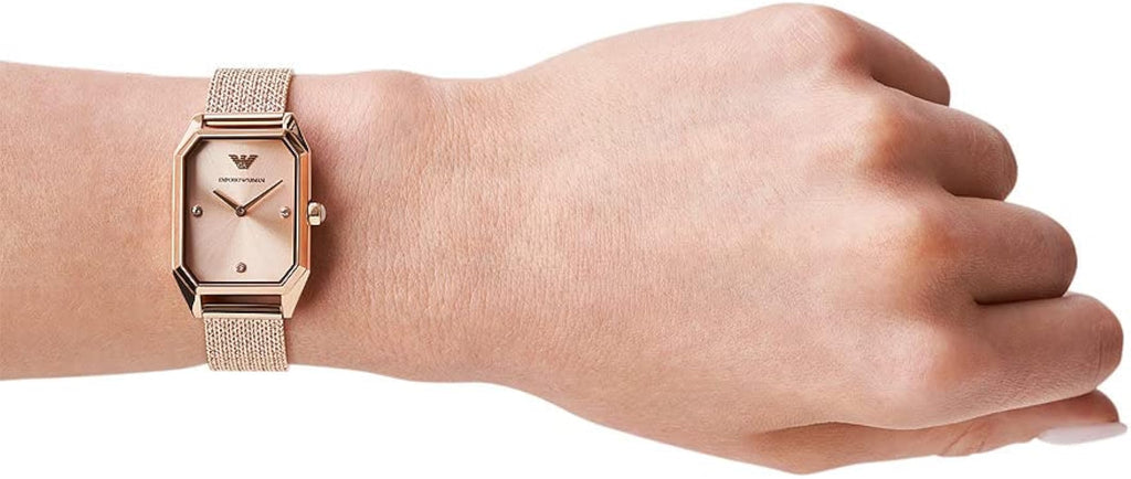 Emporio Armani Joy Quartz Rose Gold Dial Rose Gold Mesh Bracelet Watch For Women - AR11347