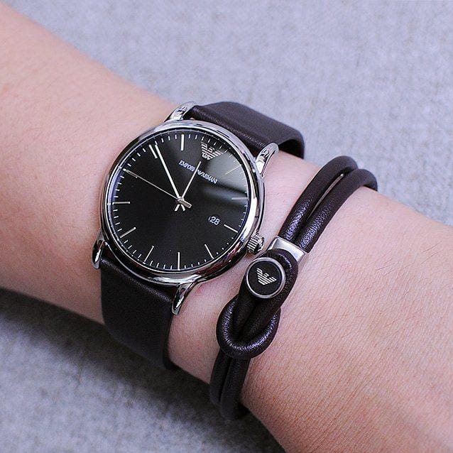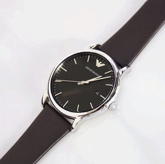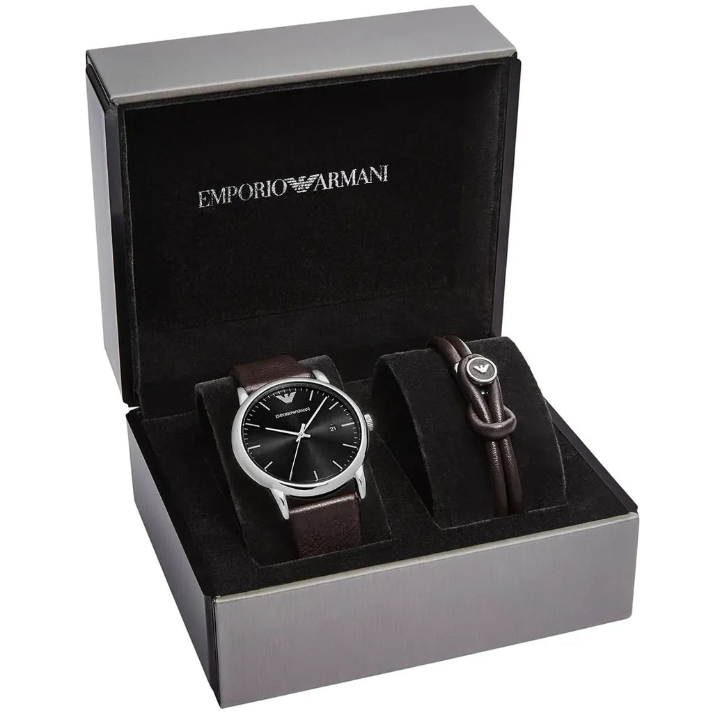 Emporio Armani Kappa Quartz Black Dial Brown Leather Strap Watch For Men - AR80008