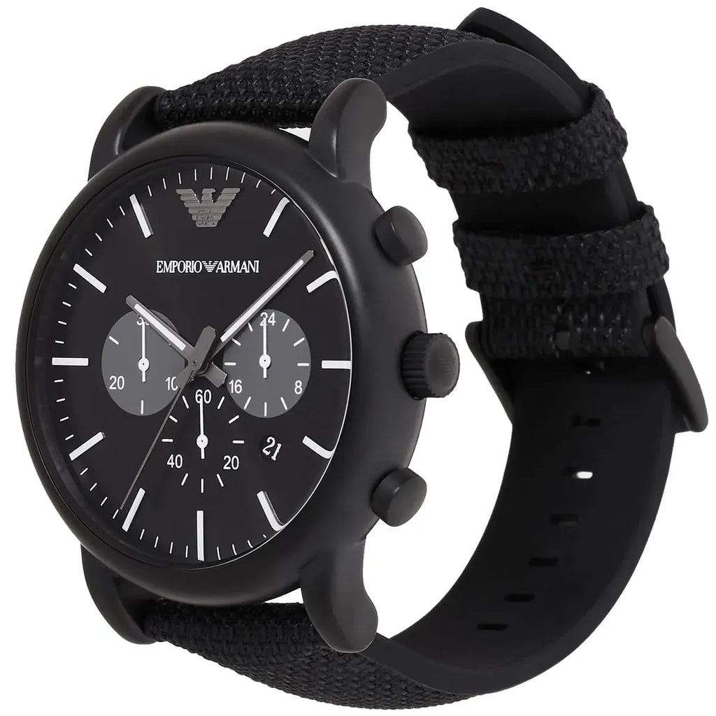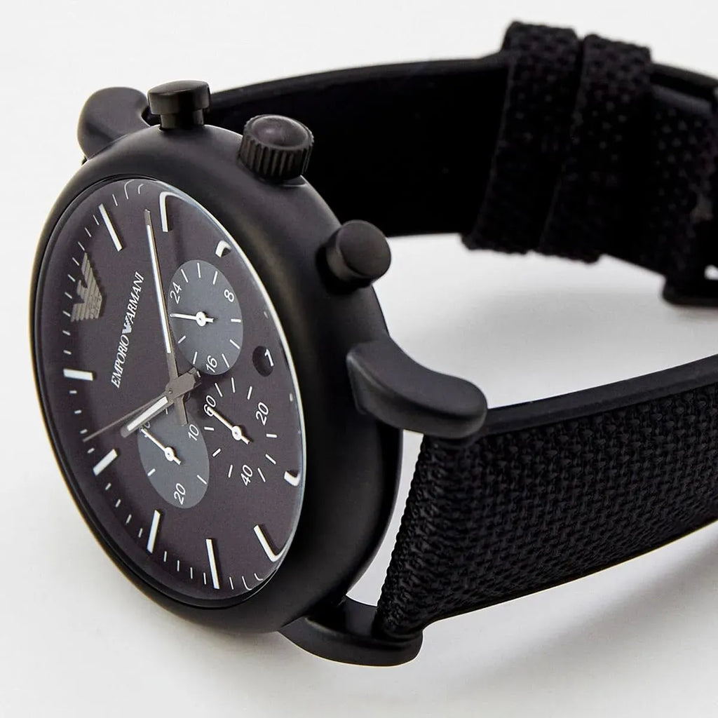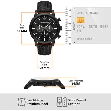 Emporio Armani Luigi Analog Black Dial Black Leather Strap Watch For Men - AR11450