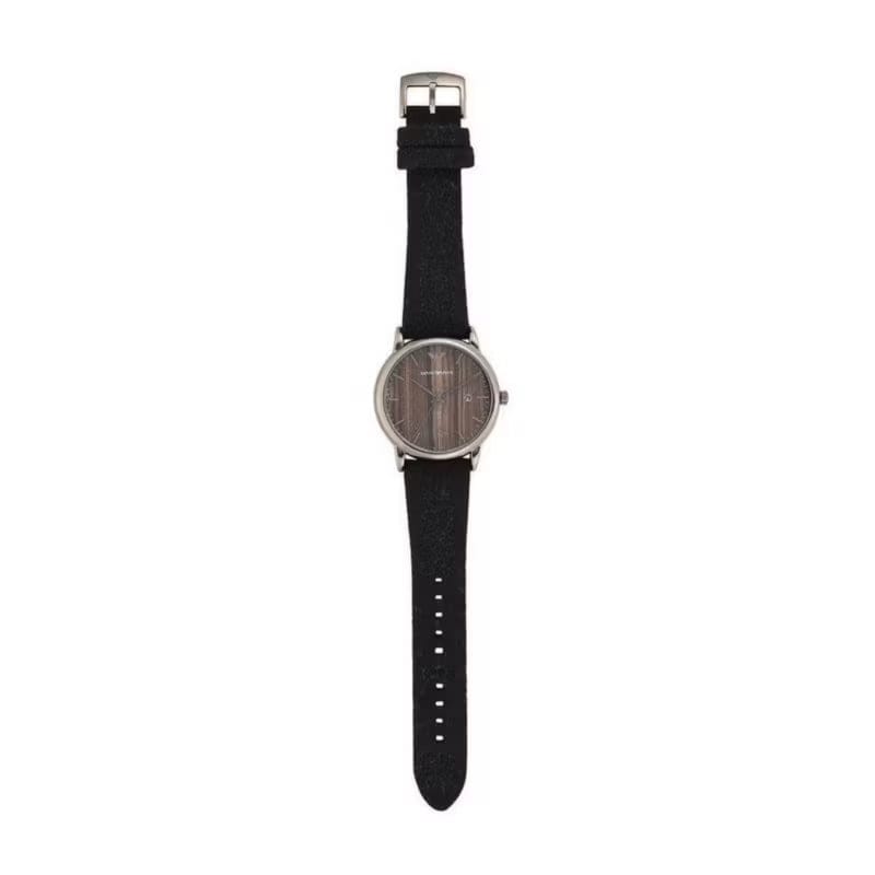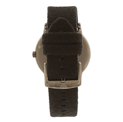 This 43mm watch features a brown marble dial with silver-tone stick indexes, three-hand movement and black felt strap.