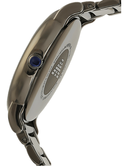 This Emporio Armani watch bears a pretty unique concept along with a stylish appearance. Equipped with a textured grey matte dial complete with grey hand movements, this watch is encased in gunmetal stainless-steel case with gunmetal topring and gunmetal three-link bracelet, the watch does not disappoint in the 'class' meter. Its USP lies in the textured inner dial