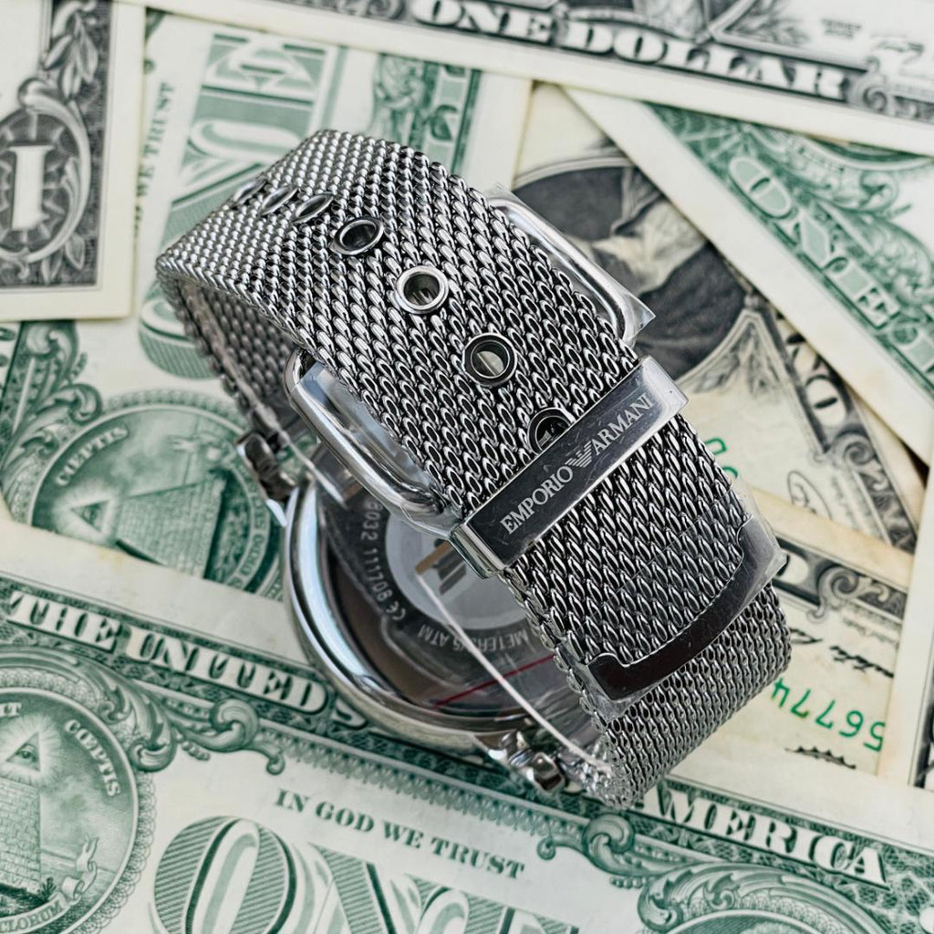 Emporio Armani Luigi Black Dial Silver Mesh Bracelet Watch For Men - AR8032