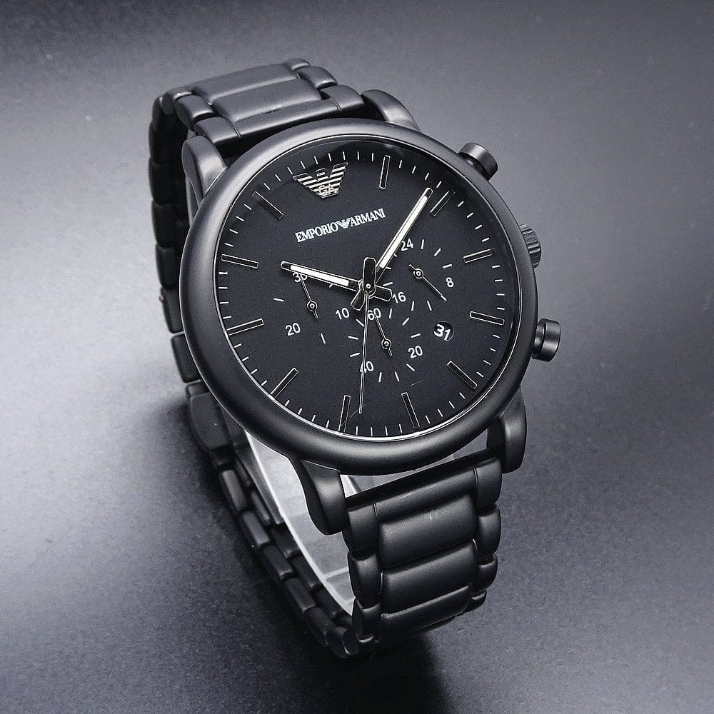 Emporio Armani Luigi Chronograph Black Dial Black Steep Strap Watch For Men - AR11045