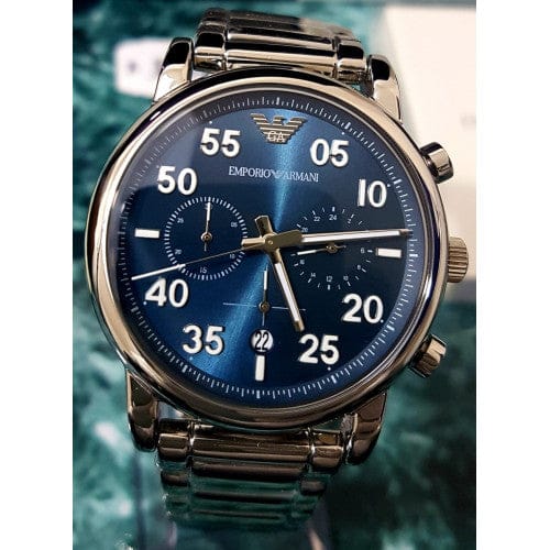 Emporio Armani Luigi Chronograph Blue Dial Silver Steel Strap Watch For Men - AR11132