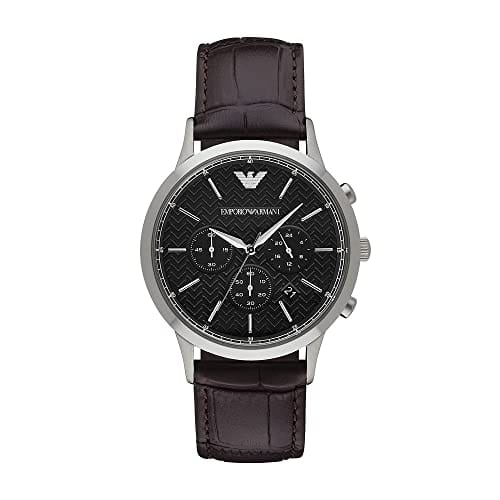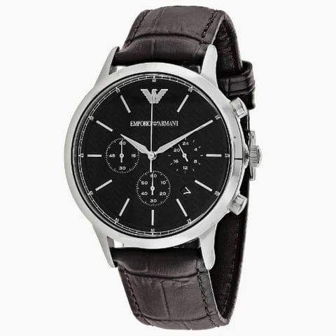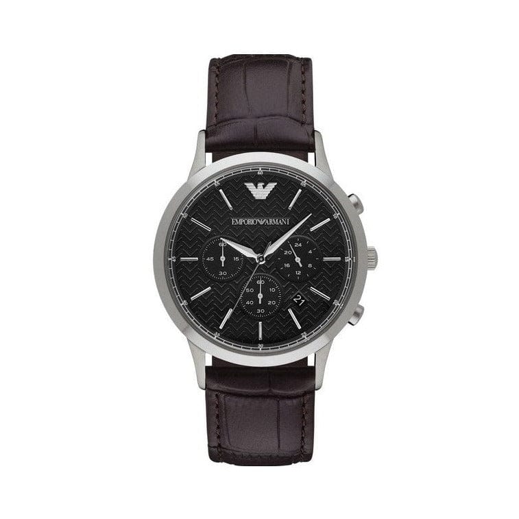 Emporio Armani Renato Chronograph Black Dial Brown Leather Strap Watch For Men - AR2482